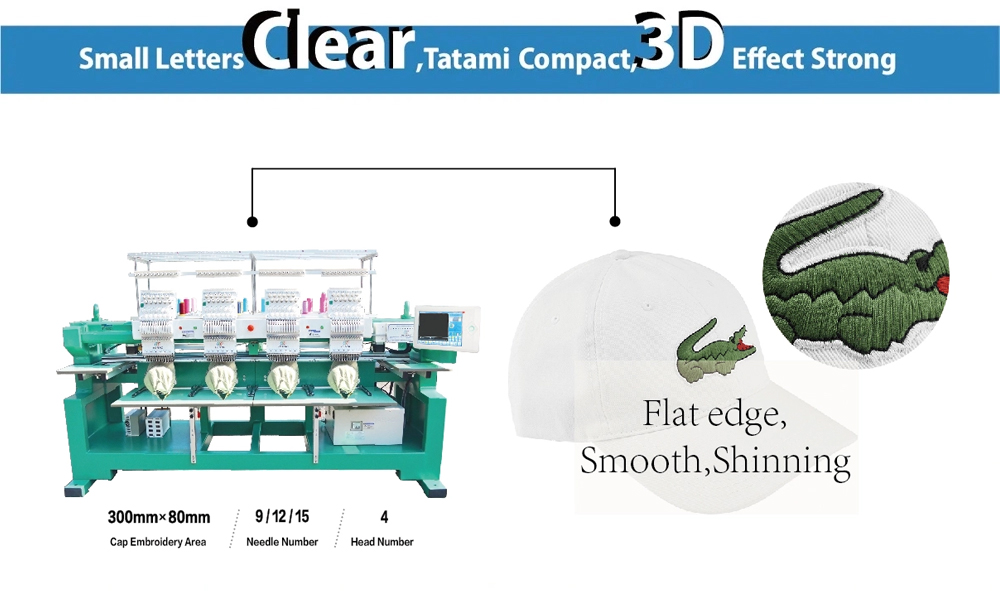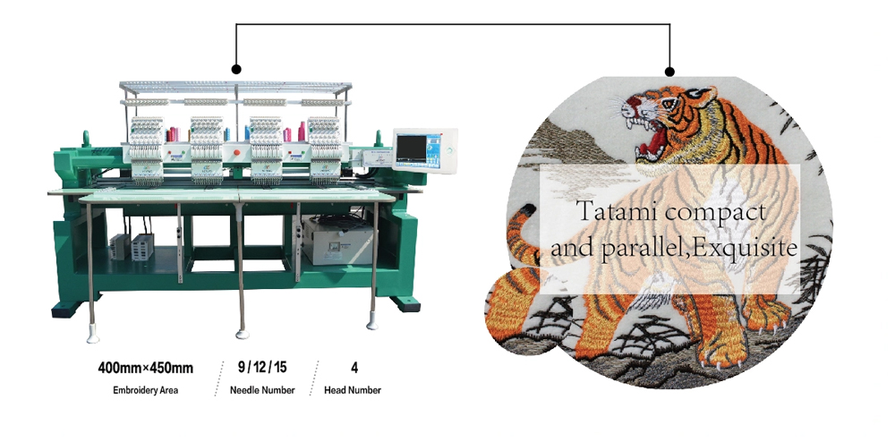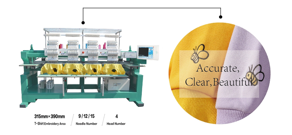 | Model | Needle No. | Head No. | Embroidery Area (mm) | Shirt Embroidery (mm) | Cap Embroidery (mm) | Machine Size (mm) |